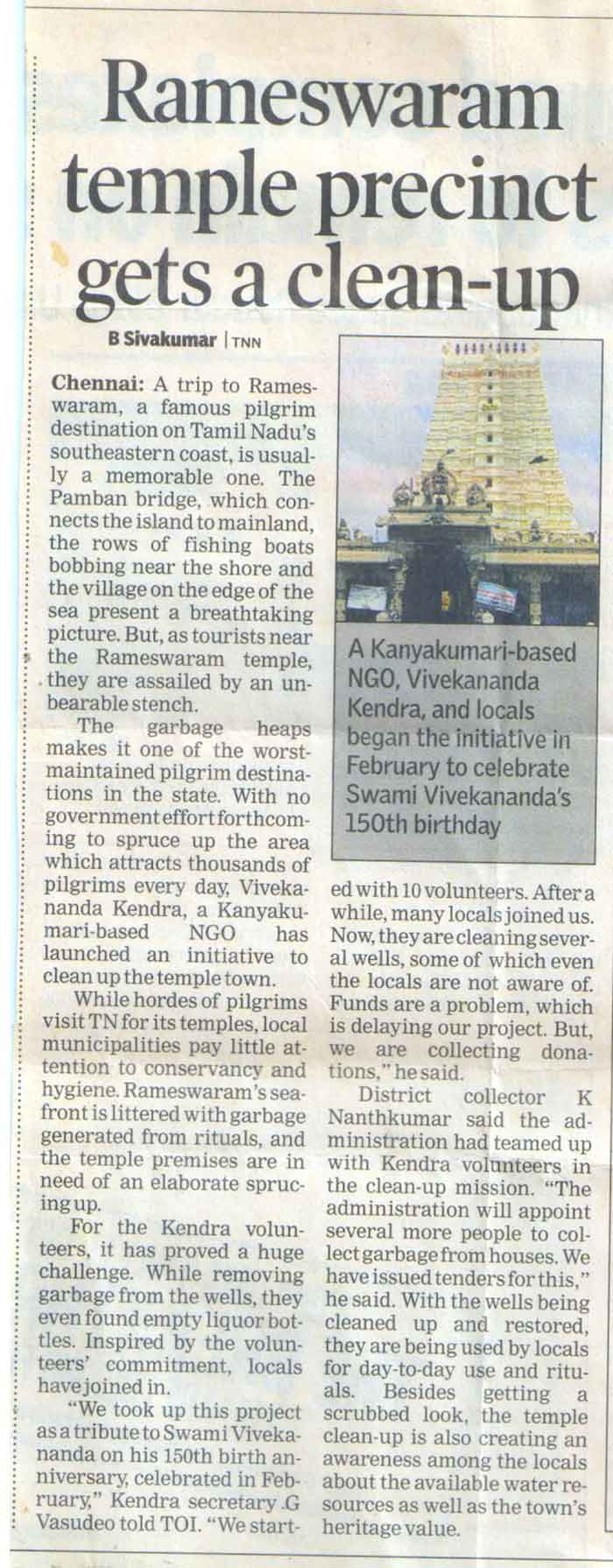 CHENNAI: Ganga has Modi & team, but it’s the NGO drive that is doing the cleanup act for South’s temple town Rameshwaram. Even before the Centre embarked on an ambitious programme to clean up the Ganga, temple town Rameshwaram in the south had decided that it needed a clean break from its polluting ways on its own.