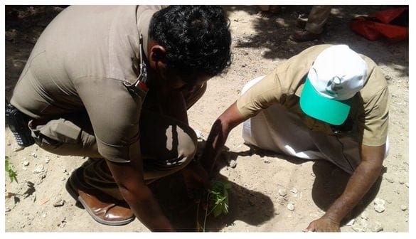 This rally was organized by Hand in Hand India. This rally was originated from Town Police station, Rameswaram and went around the temple and ended at the same place – Police station. About 150 student of Raja’s school participated along with green friends of Hand in Hand, India. Various officials such as DSP, Tahsildar, Sanitary Inspector and Inspector of Police also participated in the event. Green Rameswaram team helped in planting 30 saplings in the area with the help of Police personnel.