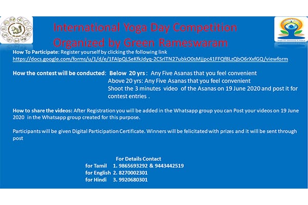 On 5th June, Environment Day programme was conducted at Sri Vardhini Mahal to commemorate the World Environment Day 2020. The District Collector of Ramanathapuram Mr.K.Veera Raghava Rao chaired the programme. The Municipal Commissioner of Rameswaram Municipality, Mr.V.Ramar, Tehsildar, Project Manager of Green Rameswaram project and other officials participated in the event.