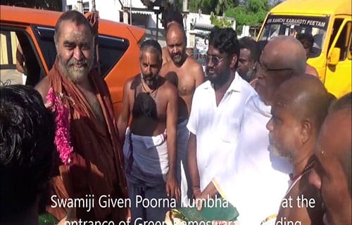 His Holiness Jagadguru Shankaracharya of Kanchi Kamakodi Peetham visited Green Rameswaram office on 25th February 2021. He was welcomed with the Poorna Kumbha.