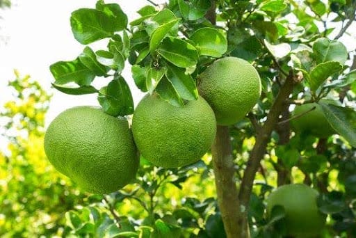 Citrus maxima Merr., commonly known as the pomelo or pummelo, is a large citrus fruit-bearing small tree.