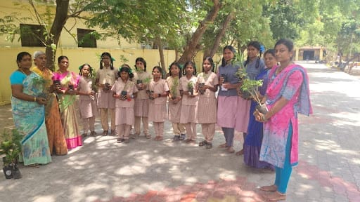A Flower Plant Distribution Programme was organized at Parvathavarthini School to promote environmental awareness and greenery.