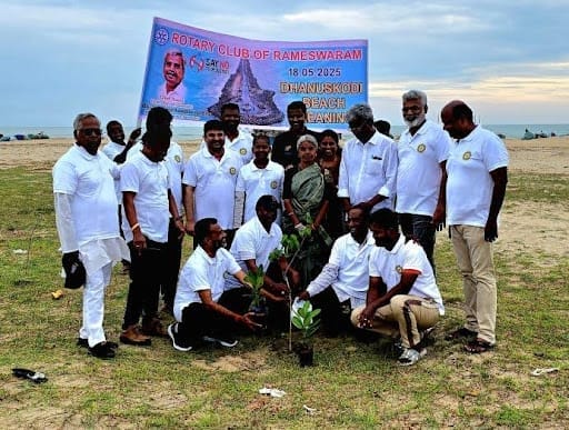 Rotary Club and other voluntary organizations along with our E-Rickshaw drivers carried out Mass cleaning programme at Dhanushkodi and Arichalmunai on May 18, 2025. 23 members participated in the drive.